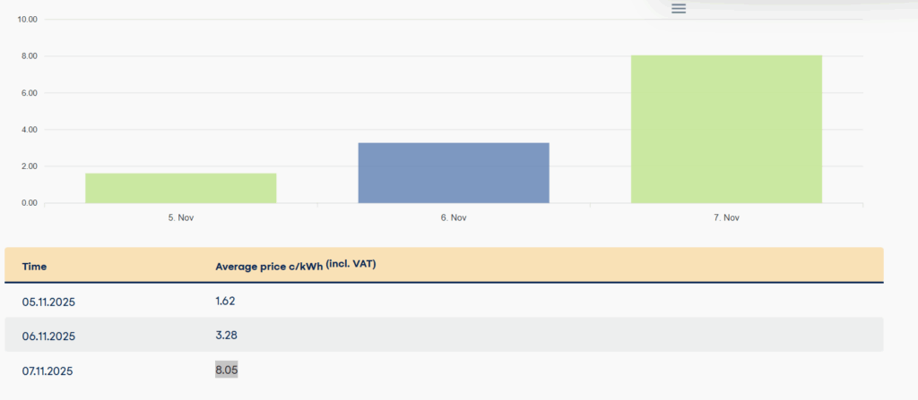 Tällä hetkellä kuluttajat voivat odottaa edullista sähköä viikon loppuun asti, mikä on tervetullut muutos marraskuun alun hintapiikkien jälkeen.